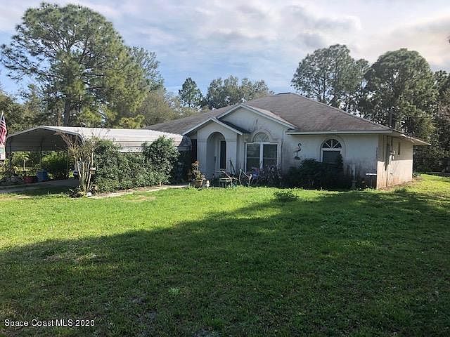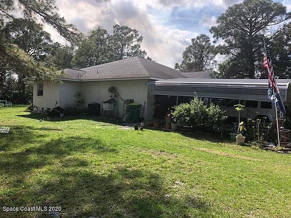 This is a great opportunity to own a solid home on an acre of land in Canaveral Groves. The house does need some love but overall is in good shape. The major items needed are a roof, exterior paint and flooring. The skylight needs to be replaced because it was damaged by a hail storm and the solar panel on the roof needs to be fixed. Beyond that, the house is laid out perfect for a growing family. There is a 2 car garage, large family in the back of the house with a fireplace and a split floor plan. The entire property is fenced in and horses are allowed. Homes in the area are selling for a lot more $ and after fixing this property up, it would have a lot of equity. The seller is firm on the price and this property is priced to sell!!! Make appointment to see today!