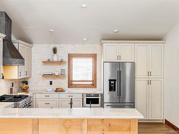 Exquisite Ranch Home with Abundant Renovations on Half Acre Oasis. Discover this renovated custom ranch home nestled on nearly half an acre of serene landscape. As you open the gate, mature trees and a tranquil fish pond create a peaceful retreat, enveloping you in natural beauty. Step inside to experience the grandeur of soaring ceilings and near floor-to-ceiling southern windows, flooding the home with sunlight. The open floor plan, accentuated by a new chef's kitchen, sets the stage for effortless entertaining. Rarely found, the main level boasts four spacious bedrooms, offering ample space for all. The primary suite is a sanctuary, boasting a custom walk-in closet and a luxurious 5-piece bathroom featuring a large soaking tub and steam shower. The fantastic open basement provides versatile space for movie nights and recreational activities, with a fifth bedroom for added privacy for guests. A private office completes this level. An oversized attached 2-car garage with storage loft provides space for all your cars and gear. A hidden off-street space runs behind the north side of the home for an RV. Recently remodeled, the home showcases new wide plank wood flooring, new thick wool carpet, completely renovated kitchen and bathrooms with custom cabinetry, a new owned solar array on the newer roof, new trim and doors, new lighting, custom tile, and more. Outside, enjoy the blissful Colorado weather in your incredible yard, complete with a fish pond, hot tub, custom covered outdoor dining space, garden, and ample room for both pets and people to roam. Conveniently located just a few blocks from Crown Hill Lake and Park, and a short 10-minute drive to the shops and restaurants of the Highlands and Berkeley, as well as easy access to I-70 and Downtown Denver this home is truly in the perfect location. Don't miss this wonderful one-of-a-kind home in a spectacular location. Welcome home.