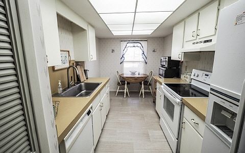 Don't wait - Ground Floor condos don't come along every day! The location of this condo doesn't get any better. Water views out the front and the community pool (Exclusive to these condos) is just steps from your back door! Fully furnished 2 Bed, 2 Bath condo with several updates including new porcelain tile floors throughout - including the front screened entryway and enclosed back porch too! Turn Key ready - just bring your toothbrush. Both the living room and the master bedroom have sliding doors leading to enclosed porch. Master bedroom has huge walk in closet and private bath. Lots of storage in this condo - lots of closets! Quaint breakfast nook in kitchen plus formal dining area. Indoor stack washer and dryer. Incredible deal on this amazing condo!