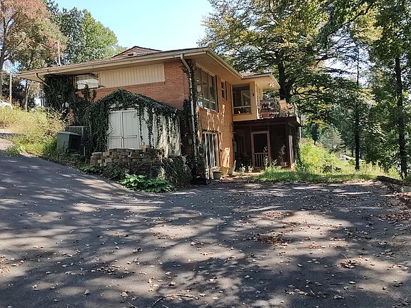 Peaceful lake front property, located at the end of the cul-de-sac on Fort Patrick Lake. Easy walk or drive to the dock & steel boat slip made to last. Over 200' of lake frontage. Spectacular views of the lake from every bedroom and main living area. If you enjoy wildlife, you'll get to see many here including deer, eagles, bobcats, osprey, fish and more. Level 1 of this brick home has wood & ceramic floors, the main bedroom and full bath, living room with gas fireplace, dining and galley kitchen with views of the lake and access to the upper deck. The lower level has 2 bdrms, 1 bath, den, utility area with abundant storage and a door leading to the screened in bath porch where there is an almost new hot tub that conveys and a beautiful view of the lake., You might want to update the bathrooms & windows along with a few repairs, and some TLC to make this home fabulous. The ceiling at the bottom of the downstairs needs replaced from leak in the upstairs bathroom tub area. The asphalt driveway was repaved in '24. There's also a chicken coop outside if you enjoy having your own fresh eggs.