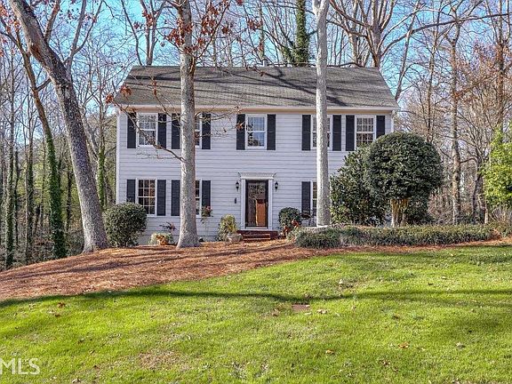 **Perfect East Cobb Location** Beautiful colonial home in Pope district. New flooring through out, new light fixtures, newly remodeled half bath, new granite counter tops, new stainless steal appliances, vaulted exposed beam sun-room , formal living and dining rooms, finished basement has office and living space (kitchenette could be added for in-law suite), large attic for storage. Covered deck looks out over wooded backyard with a nature trail leading to neighborhood playground and pool.