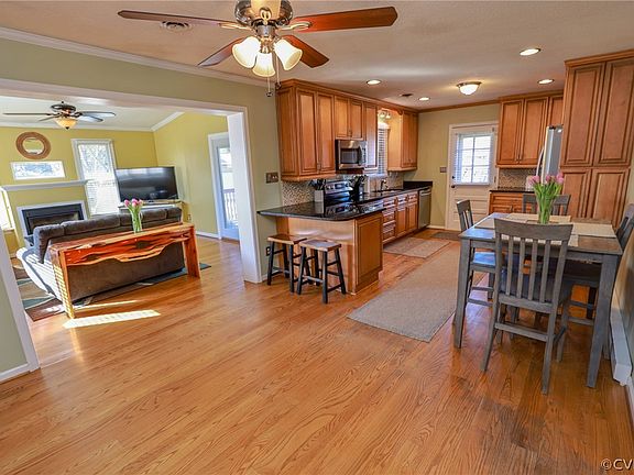 Super cute 3-bedroom 1.5 bath all brick Rancher in Prince George loaded with charm and ready for you! Upon entry is the foyer & cozy living room with hardwood floors & large picture window which lets in tons of natural light. Spacious eat-in kitchen with beautiful wood cabinets, granite counter, breakfast bar, stainless appliances, recessed & track lighting, utility closet & side entry. Lovely family room with hardwood floors, vaulted ceiling, ceiling fan, gas fireplace & deck access. Down the hall is the primary bedroom complete with wall-to-wall carpet, ceiling fan, sliding door closet & private half bath with single vanity. Bedrooms 2 & 3 both have wall to wall carpet & single door closets. Full bath comes with tile floor, single vanity & tub/shower combo. Home also features double with paved driveway, back deck perfect for entertaining & cooking out, fenced in back yard with detached storage & gardening area.