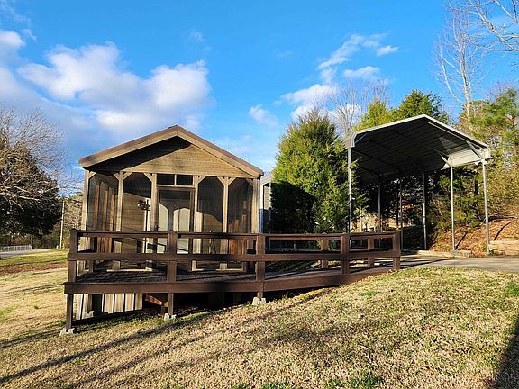 Absolutely adorable "Little Lodge" located in a peaceful setting in the Hokes Bluff/Glencoe area. Nice lot with a 3 BR septic. Live in the tiny home while you build your dream home, or just live in the tiny home. It comes with all appliances including washer/dryer. Enjoy the country sitting out on the screened porch, complete with ceiling fan, or leave the french doors open and enjoy the outdoors while you sit in the living room. Open feel with tall ceiling. You have to see it in person to realize just how much room you have. Huge covered RV pad with hookups and storage area, or use it to park cars or boats! Won't last long! This property has been very loved and you can tell!