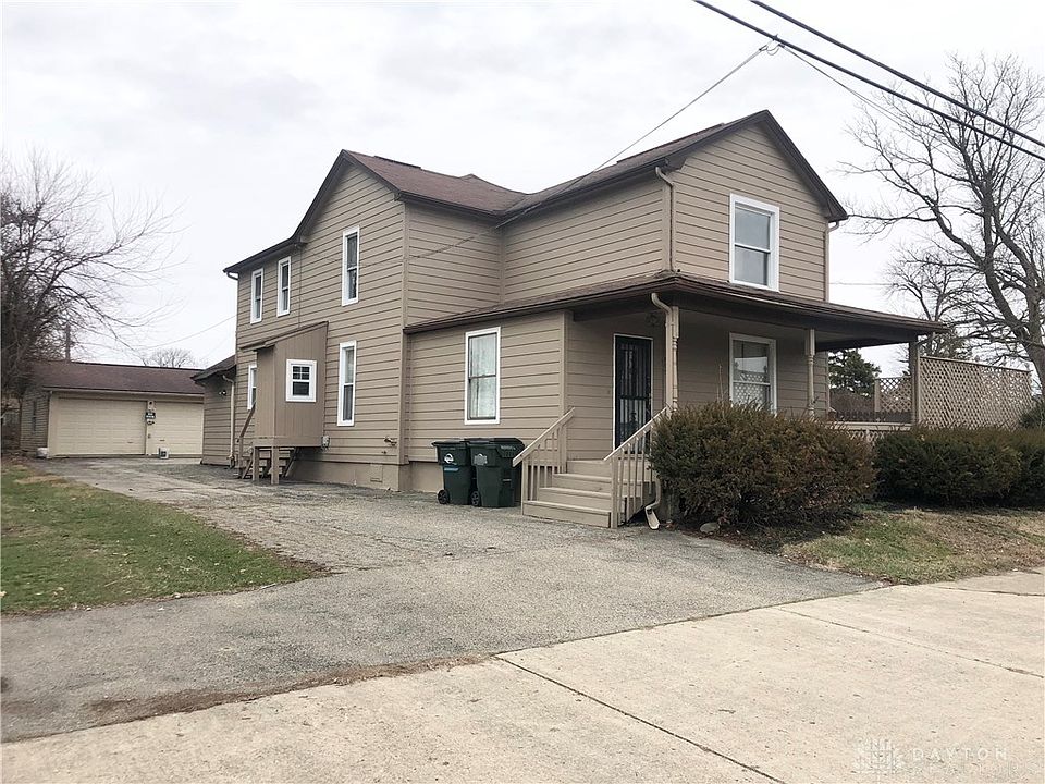 Rare opportunity to own a one of kind home with so many possibilities in Vandalia-Butler School District. A great investment property with over 2100 sq ft and a 3-car detached garage, with plenty of space for one family or use it as a duplex for two families. The first floor hosts one large kitchen, large utility room, large storage room, living room, bedroom and one full bath. It also includes new flooring through-out. Upstairs has 2-3 bedrooms, a living space, kitchen, and another full bath. Outside you'll find a large fenced-in yard with a wrap-around driveway, plenty of parking and a 3-car garage. This is a perfect work space on a large corner lot in an extremely convenient location. The possibilities are endless with this one. Don't miss out on this great investment! (Brand new roof was installed Jan 2023 and all appliances in the home are included.)
