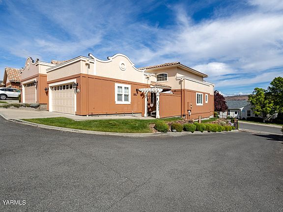Ultra-rare single level home at Villa Messina! Gated courtyard entry, tall ceilings, gas fireplace, island kitchen, and a deck (plumbed with a gas line) with a view to the northern foothills. Recently updated with a new gas FA furnace and central AC, hot water heater, washer/dryer and dishwasher.Close to the Yakima Tennis Club, the Westpark shopping center, and Fred Meyer. Low HOA of $75 per month. No age restriction.