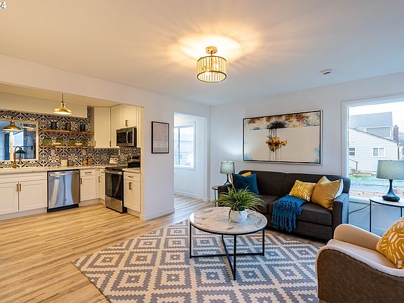 Discover this beautifully updated home in Kenton, perfect for first time buyers! Updated and move in ready with 3 bedrooms, 2 baths, partially finished basement (at head height) with lower level opportunities ready for you to complete as your needs evolve. This home has a fresh and modern interior with all new exterior & interior paint, new flooring, tiled bathrooms & floors, new kitchen cabinets with SS appliances, open butcherblock shelving, new plumbing & new sheetrock. There is a slider in the hallway leading to the driveway or to the oversized 2 car garage with freshly painted floor. All on a corner lot with a huge fenced yard! This home is more than just a place to live, it's a place to thrive. With modern updates, a spacious layout and desirable location, you will fine everything you need for a comfortable lifestyle. Don't miss out on this wonderful opportunity to make this beautiful home your own! Come take a look! Open House Sat 18th & Sun 19th 12-2PM [Home Energy Score = 2. HES Report at https://rpt.greenbuildingregistry.com/hes/OR10234607]