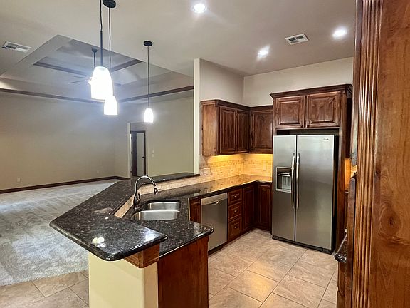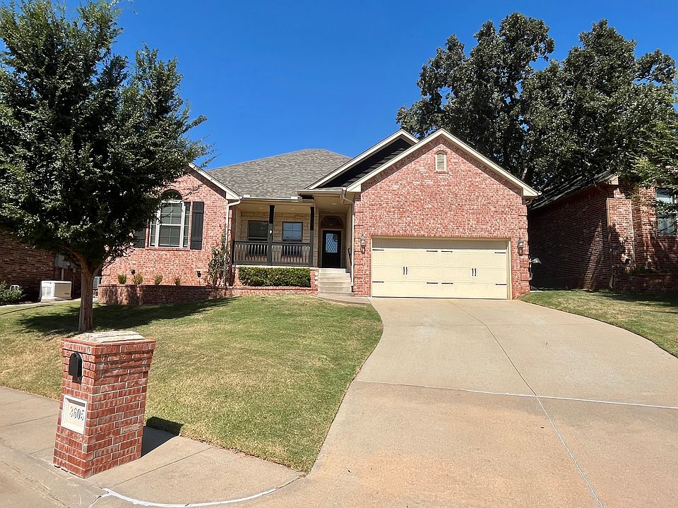 You will love this 3 bedroom + office, 2 bath, 2 car is located near 2nd and I-35 in the Windsong addition. Office could be 4th bedroom as it does include a closet. Lot backs to wooded area, with nice views from back covered patio. Living is open to kitchen and dining and includes ceiling fan, gas log fireplace plus 2 large windows for great light. Kitchen features granite counters, eating bar, and plenty of cabinets. Appliances include refrigerator, gas stove, microwave and dishwasher. Master bedroom has ceiling fan, large window and private bath. Double sink vanity, jetted tub with separate shower and two walk in closets in master bath. Lawn care included! Owner Pays HOA Dues. No smoking or pets permitted.