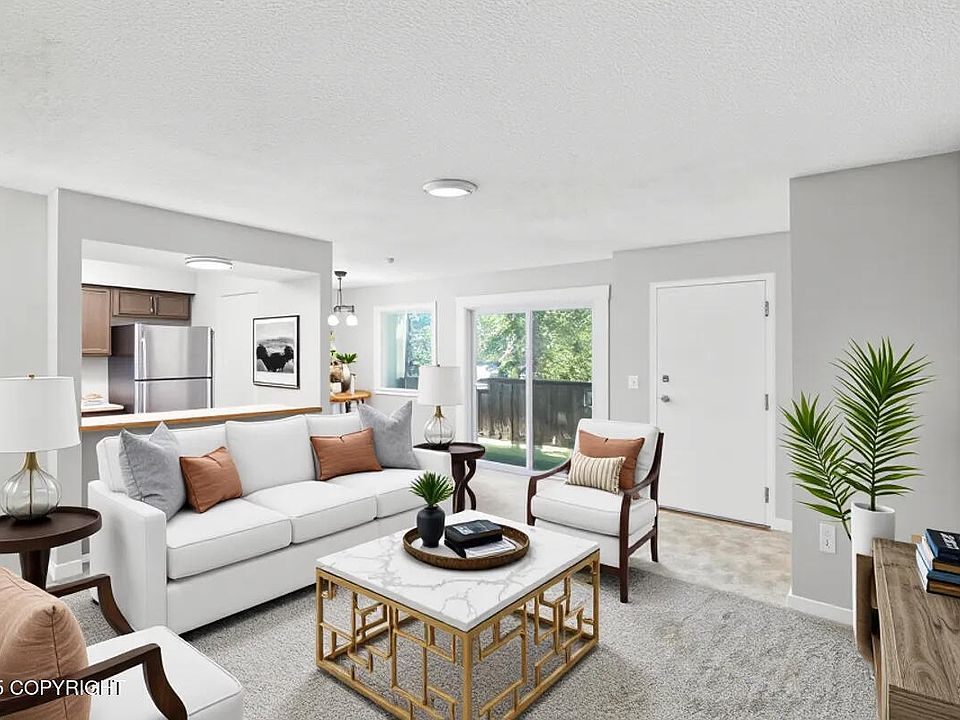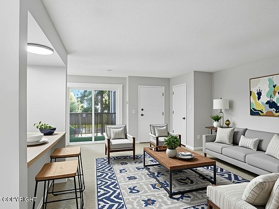This move in ready and inviting condo offers a cozy atmosphere features 2 bedrooms, 1 bath, and a convenient 1 car carport. Situated in the desirable midtown area, which offers easy access to parks, trails, restaurants, malls, and Downtown Anchorage. This condo has been recently updated with fresh, trendy paint throughout, giving it a kitchen boasts w/ new upper cabinets,and light fixtures, while the condo also includes 2 spacious balconies (front and back) for outdoor enjoyment. Additionally, high-end washer and dryer in the unit will be included in the sale, providing added convenience for the new owner. Disclosure, Some pics have been virtually staged.