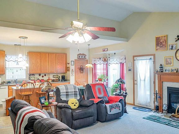 Hard to find step saving ranch.Open floor plan with gas log fireplace to enjoy family gatherings. Kitchen has Corian counters, loads of cabinets and Island with electric. Nice privacy fenced back yard with deck. Partial basement will make a great rec room or man cave. Master bath with whirlpool tub and separate shower. New AC unit, alarm system and Complex has pond. Close to 270 and 10 min to downtown. 1 year Home Warranty included.