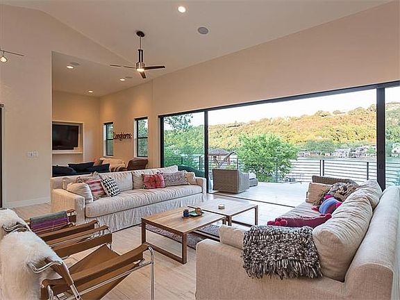Stunning Lake Austin Waterfront home! Built in 2013 w/the ease of lake living & entertaining in mind. Easy access to downtown, UT & in AISD this home works as a permanent residence or a second home for the out of town buyer wanting to be close to the city on the lake. With 2 garages & a dedicated parking pad in front, & a large parking pad for 4 cars, RV, trailer, etc at street level parking is easy for the owner & guests. Over the boat dock is a large party deck w/gorgeous views up & down Lake Austin!