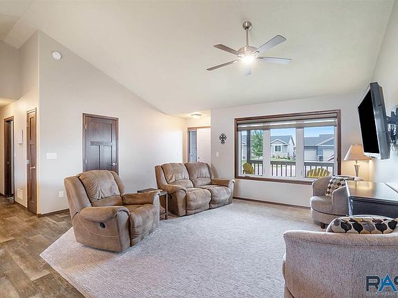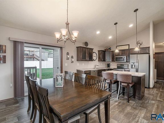 Come see your new home in southeast Sioux Falls! This fantastic ranch has the most inviting covered front porch, where you will want to sip lemonade and enjoy the friendly neighborhood. Step inside and you will love the open vaulted layout with a great kitchen offering stainless appliances, pantry closet and breakfast island. The dining area is spacious and has a slider to the back deck. Owner's suite has a vaulted ceiling, full bath and walk in closet. A second bedroom is on the main along with an additional full bath and main floor laundry that is so convenient and leads out to the roomy three stall garage. Downstairs is an enormous family room for endless fun, two more bedrooms with walk in closets and another full bath, plus there is unbelievable storage that you can never get enough of. The backyard is partially fenced and has a paver patio that will provide relaxation and entertainment during the summer and fall, perfect for a firepit. Welcome home!