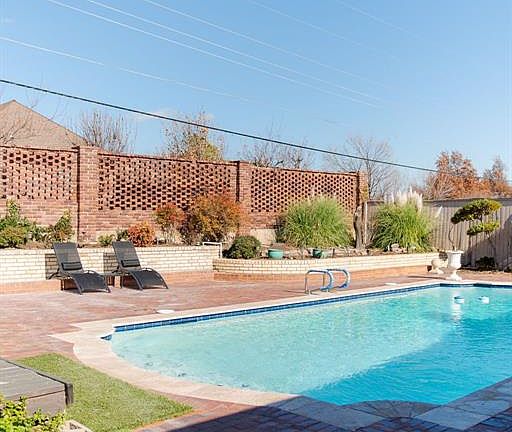 Welcome to this picturesque ranch-style mid-century home in the serene neighborhood of Treadwell Hills, minutes from the center of Oklahoma City. Upon entry, you will find a spacious formal living and formal dining area, and then you will make your way into the large living room with a gorgeous stone fireplace and hardwood floors. The galley-style kitchen includes granite countertops, a built-in hutch with glass doors, and a breakfast nook area, the perfect place for your morning coffee. Along with the storage in the laundry room and large pantry, numerous storage areas are throughout the home. Off the kitchen is the conveniently located half bathroom. The living area provides an ample space with high ceilings, a beautiful stone fireplace, and a wall of built-ins. The highlight of this property is the exquisite Venice-style pool, a stunning centerpiece in the backyard accompanied by the covered back patio and pool cabana surrounded by a hand-laid brick terrace. This home features three generously sized bedrooms, all located on one side of the house, and both the primary and guest bathroom are sizable and have granite countertops. Don't miss this opportunity to make this exceptional, warm, inviting property your own.