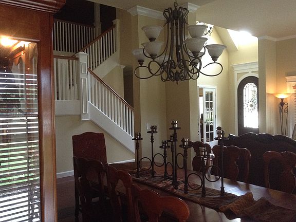 Spacious colonial style home with enchanting wrap around porch! Outdoor oasis with cascading waterfall, pergola, and fireplace with open views. Grand entry w/ vaulted ceilings, wall of windows pour light in, fabulous kitchen w/ oversized island and work space, highly coveted open floor plan, and master down. Private quiet neighborhood.