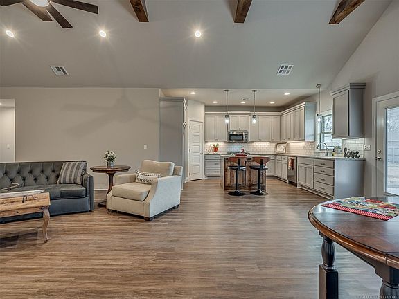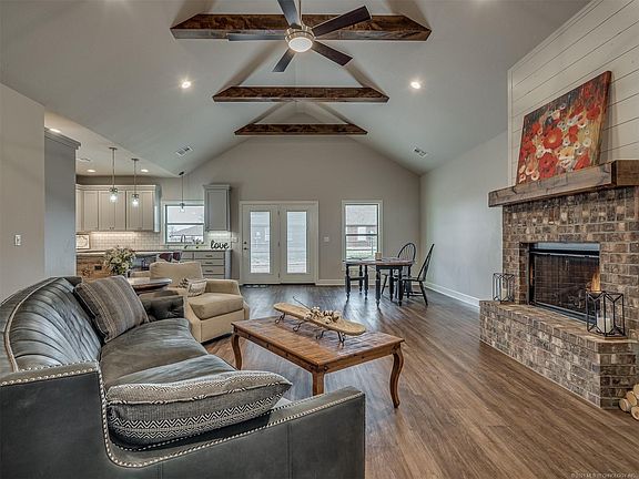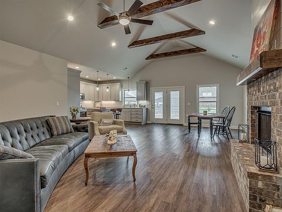 New construction - Open concept, Split floor plan - 4 bed, 2 bath home on large lot with LOTS of upgrades thru-out! Beautiful, Large living room w/vaulted ceilings, custom beams, & gas FP w/shiplap accents. Full Kitchen w/island/bar area, and pantry. Large Master with private bath w/tiled walk-in shower and separate walk-in closets, laundry w/cabinets, large covered back patio, LED light fixtures, granite throughout, stainless steel appliances, brand new sod & MORE! Full 1 year Builder's Warranty.