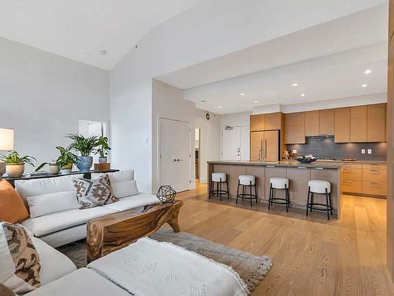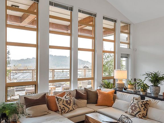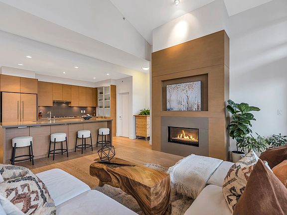 THE VIEW PENTHOUSE YOU'VE BEEN WAITING FOR! Do you like soaring ceilings, sky-high windows, a private 612 sq ft partially covered deck and a view? This is the Penthouse for you! 2 bed, 2 full baths + den urban contemporary home in the desirable Destiny at Raven Woods. Ample entertaining space inside and out. Open-plan living space with gas fireplace, beautifully appointed kitchen, engineered hardwood floors and spacious spa-like bathrooms. Extras include, 2 side-by-side parking (with EV outlet), storage and bike lockers, 2400 sq ft fitness facility and the best of the North Shore with easy access to trails, beaches, parks, ski-hill, golf and choices of shopping options. Views overlooking the reflecting pond and ocean, this is the crème de la crème of penthouses at Destiny!