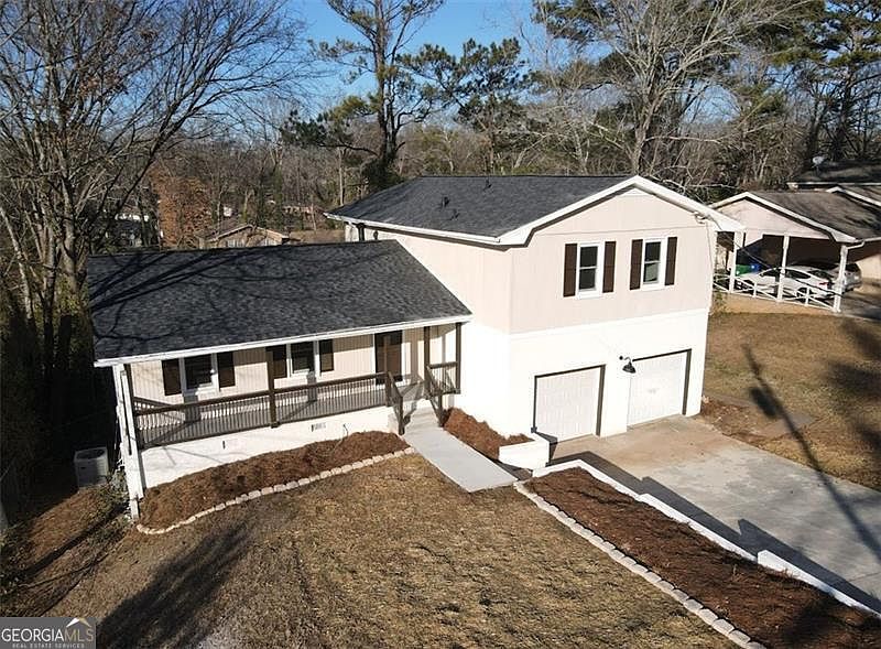 As you approach this beautiful Churchill Downs community, complete with a beautiful park, with a nice walking trail and community lake, you will notice the tranquil environment. Just a 5-minute walk from the lake, you'll appreciate this immaculate 5 bedrooms and 3 full bathrooms on unfinished basement. This home was recently updated by a design and construction team that was featured on HGTV's House Hunters TV Show. Upon entering the home, you will be greeted by the open floor plan which offers the space for relaxing and entertaining. Whether you're watching your favorite show or enjoying a quiet evening, this area is versatile and accommodating. The bright kitchen boasts new custom cabinets, custom island with Pendant Lights, new tiled backsplash, modern vent hood, recessed lights, all new stainless-steel appliances and new quartz countertops. This home is complete with new LVP floors throughout, fresh interior and exterior paint, new roof, new HVAC, and new hot water heater. On the upper level you will find the chic main bedroom which includes an updated closet with a separate desirable updated main bathroom including tile shower. You will also find 3 spacious bedrooms along with an updated bathroom with tiled shower/tub. On the lower level you will find a separate laundry area which makes everyday chores a breeze. You will also find a full bathroom with tiled shower and an additional bedroom and a sitting area/office. In addition, you will find an unfinished basement with separate entry access, ready for your future project such as a separate living suite or entertainment area. The fully fenced yard is a wonderful space for children and pets to play safely, and the expansive outdoor area is perfect for gardening, barbecues, or simply enjoying the fresh air. This home combines comfort, convenience, and the potential for future growth. With its inviting spaces and modern amenities, it fully meets your needs and provides a perfect setting for creating lasting memories, all while being located close to the expressway and minutes from downtown Atlanta. Plus, your family's new castle is nestled in the Southwest Dekalb High School, Chapel Hill Middle School and Bob Mathis Elementary School zone. Welcome to your lovely new home.