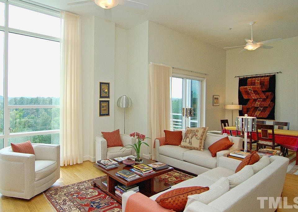 GORGEOUS, elegant PENTHOUSE with best views in The Triangle! *12' floor-to-ceiling windows with custom motarized shades (and sheers too)*Bamboo floors*High-end appliances*Quartz and granite for all counters*Desirable 2 BR PLUS DEN unit*2 secured garage parking spaces The East 54 lifestyle offers sophisticated amenities: rooftop pool/fitness center/trails/playground/bocce court/restaurants/shops. Fabulous location 2.5 miles to I-40 and easy stroll to UNC campus. GOLD LEED Certified! Agents-see agent only