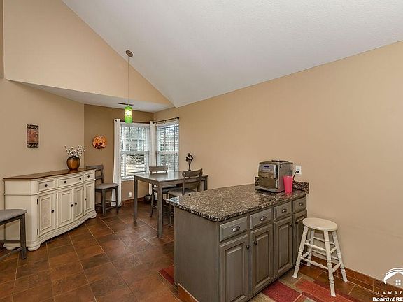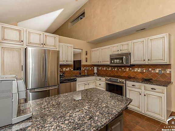 SUPER COZY 2 bed/2 bath/2 car on 2nd hole of Alvamar Golf Course w/addtl non-conforming bdrm/office/workout rm! Nice kitchen w/eat-in dining, granite countertops & SS appliances--including frig & new range! Large formal dining or 2nd living area. 18x15 living rm w/cozy elect fireplace! Living rm patio door leads to awesome fenced patio area & gorgeous views of the golf course! Large master bdrm, walk-in closet & master bath. Washer/dryer on main level stays! Cul-de-sac lot. Cannot close before early April!