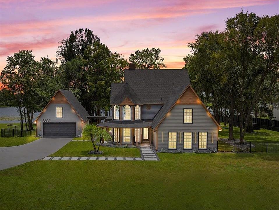 One or more photo(s) has been virtually staged. Experience lake front luxury living in this fully renovated home on nearly two acres in Windermere. This home also has a separate oversized garage with an upstairs mother-in-law suite/guest suite complete with a full bathroom, new split unit AC which is perfect for accommodating guests or extended family. The property boasts an open concept layout, starting with an elegant foyer leading to a cozy living area with a fireplace. The modern kitchen is a chef’s dream, offering custom-made cabinets, brand-new appliances, a gas stove, and two wall ovens. The first floor has walls designed for a modern ambiance, and the second living room includes a sink, wine cooler, and cabinets, perfect for converting into a home theater, office, game area, or bar area. At the end of the day wander over to your master bedroom which offers an enormous walk-in closet and a balcony view… Take advantage of the outdoor space which includes a front yard large enough for a soccer game, a backyard with a pool, new outdoor games, and a renovated dock with a sandy beach feel. Recent renovations include a new roof, new septic tank with pump, new flooring, new lighting fixtures, an open concept design, fully renovated kitchen and bathrooms, fresh paint inside and out, and a revitalized dock area. Additional updates include a new irrigation system, outdoor play area, pool heater and pump with smart technology, new pool lights, new fence, and modern outdoor lighting. Sit back and enjoy the nightly fireworks from Disney in your backyard or on the dock overlooking the lake. This home offers the best of Florida living—contact us today for a showing! This home has been appraised over the listing price, with documentation available upon request