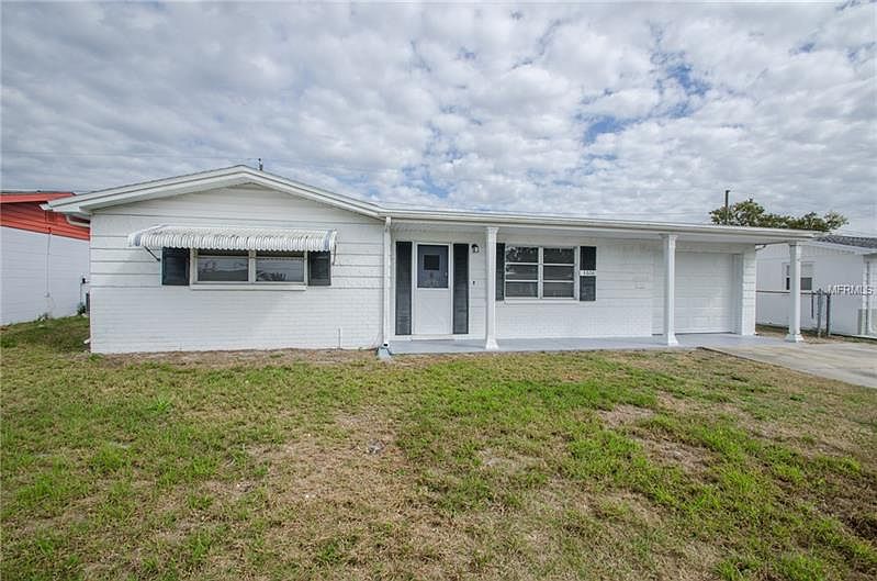 Wow!! Don't miss this one!! Cute 2 bedroom, 2 bathroom starter home in Port Richey. **Move ready with new roof, 2 tone paint, and carpet!** Living room off entry. Kitchen features new stainless steel appliances, new counter tops and wood look tile floors plus pantry. Spacious bedrooms with large closets. Family room off kitchen. Screened in patio off back entrance overlooks fenced grass backyard. Great spot to relax after a long day! Sure to go fast!!