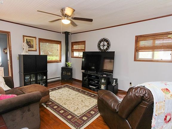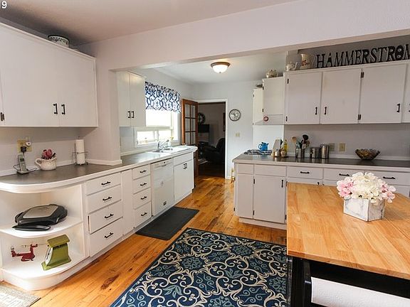 GLORIOUS GARDENS! Lush lawns and sheltering trees on over 1/2 acre w/flowering shrubs & garden area! Patio is partially covered and overlooks all the beauty! Big deck in front, RV parking & fenced yard. Vintage meets modern in this beautifully updated and maintained home w/hardwood floors thru-out, woodstove & propane stove. Roomy kitchen has lots of counter and cabinet space w/center island! Upstairs is a loft bd. Fam Rm has skylites.