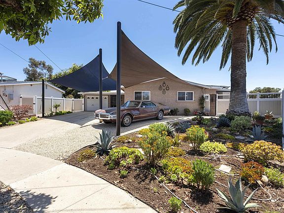 This stunning MUST see Clairemont home is located at the end of the cul-de-sac is totally private with a canyon view. Owners spared no expenses in their upgrades. The kitchen is complete with stainless steel appliances, Corian & wood-look granite counters, and custom cabinetry including pull-out shelves and two corner lazy susan cabinets to take advantage of all usable space. Open concept to the family room for seamless flow. 3 Bedrooms with one an ensuite boasts a full bath with granite bench shower with rainforest shower head and one individual flow shower head. A private hall bath includes tub for those relaxing nights. Both bathrooms include state of the art bidets and in-wall cabinets for additional storage. The highlight of this home is the back hardscaped & turfed yard. It is like having additional rooms with outdoor curtains to separate or open the space. Dining area including granite BBQ with ice chest makes for outdoor entertaining a breeze. Cozy up by the granite gas firepit in the living area under the louvered patio cover. Leave closed for shade or open for the night breeze. Yard is completely fenced in with easy care vinyl and block fencing for those families with children or pets. Succulent gardens all around add a nice green touch. Converted garage to a workshop and office includes mini-split A/C unit for comfort. This room could be easily converted to a full use garage but there is shade cloth covered parking for 3 vehicles in the driveway. See Supplement and Associated docs for features & upgrades.
