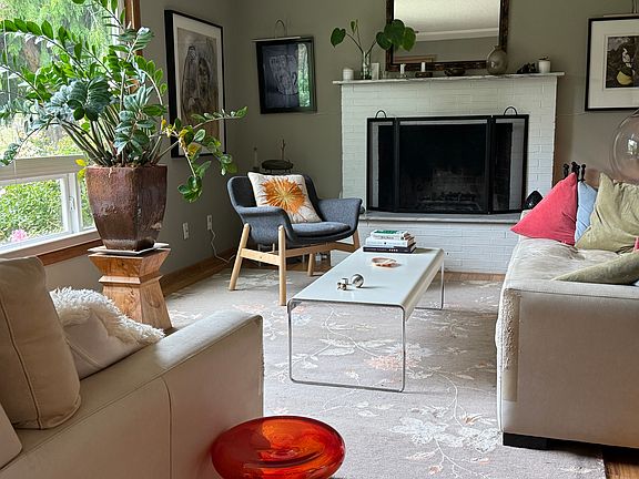 Working from home? This home has a separate den with desk space, super comfy chair, sectional in front of the TV that can convert to guest bed as needed. Two queen size bedrooms, 2 bathrooms, (en-suite for primary). Large living room/dining/kichen in open plan U shape. Covered patio with BBQ for your outdoor evening dinners in fenced back yard. Quiet street in lovely neighborhood. Owner pays all utilities. This is a non-smoking home, pets are fine - there's a cat door with tag for collars as raccoons will get in otherwise. This is a mid-term let - more than a month and less than a year.