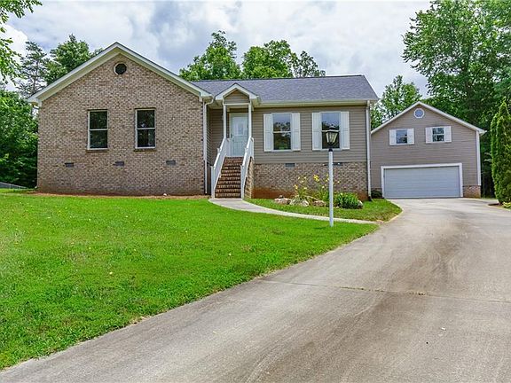 WONDERFUL 3 bedroom, 2 bath on ONE LEVEL. 1918 sq ft located on peaceful .57 acres with a rich border of mature trees. FABULOUS open floor plan boasts refinished hardwood floors, fresh paint,,new fixtures & oversize windows. Expansive family room opens to bright dining room and kitchen with NEW flooring, countertops and tile backsplash in soft greys. Split plan places master suite on rear left of home with private bath and walk-in closet. Bedrooms 2/3 connected by a jack-n-jill bathroom are on the front of the home. Large laundry room. NEW deck on rear of home is perfect for grilling, entertaining, watching kids at play, etc. Detached garage is oversized and provides outside entrance and NEW steps on rear that lead to upper bonus room. Generous lot can accommodate swimming pool, hot tub, vegetable garden, outdoor play and more. INCREDIBLE parcel and home with the feel of the countryside, yet minutes from interstate and shopping. WELCOME HOME!