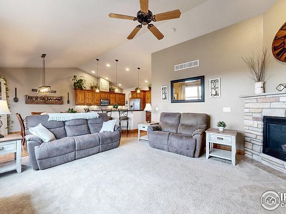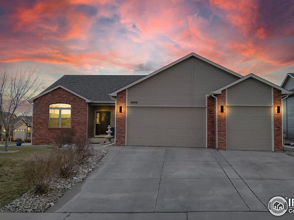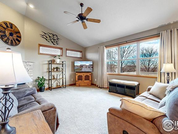 Very Open Ranch Style Home w/sweeping vaulted ceiling through kitchen, great room and dining room. Views of foothills and Longs Peak from covered back deck, yard, dining room, great room and master bedroom. SS appliances w/gas range, granite counter tops, pantry and custom cabinets. Spacious master w/5pc bath and walk-in closet. Utility room w/laundry tub and 1/2 bath. Finished basement includes 2 large bedrooms, huge family room, wet bar and a large storage room. Dog run, enlarged 3 car garage w/additional 100 sq ft. Walk to the New Mehaffey Park and around the wooded trails. Lots of wildlife including deer and elk who have been seen right in the greenbelt behind the backyard. Feels like mountain living but with the security of the suburbs. Brand New Roof, Furnace and A/C