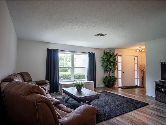 Extremely scarce opportunity as perhaps the only fully and professionally remodeled waterfront home in the ideally located community of Fairway Springs. Situated in the heart of booming Trinity, yet tucked away in a welcoming neighborhood characterized by fully grown, natural Florida oaks and mature landscaping, this home has it all. Every room of this beautiful home was upgraded to exceed the design and quality of many new builds in the area, with investments including new 'driftwood gray' flooring meticulously installed throughout, redesigned modern kitchen layout incorporating all new appliances and renovated bathrooms. You will notice all the beautiful upgrades including 'industrial style' light fixtures, brand new front window, new sink and disposal, subway tile back splash and beautiful quartz counters. The home has 2 master suites and has the possibility of a third bedroom by converting the family room. Both baths are beautifully renovated with new fixtures, lighting and quartz counters. The master bath shower has beautiful new tile. Large walk in closets in both bedrooms offer great storage. The master bedroom has sliders out to an over sized screened porch that overlooks the beautiful view of the pond behind the home. The home also features hurricane shutters and a new garage door opener. The community offers a pool and workout room. This home is in the Longleaf Elem. School, Seven Springs Middle and Mitchell High School districts. Great area and beautiful home combo!