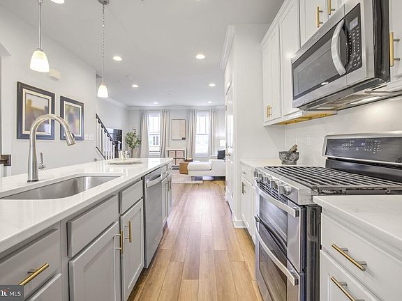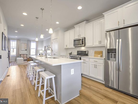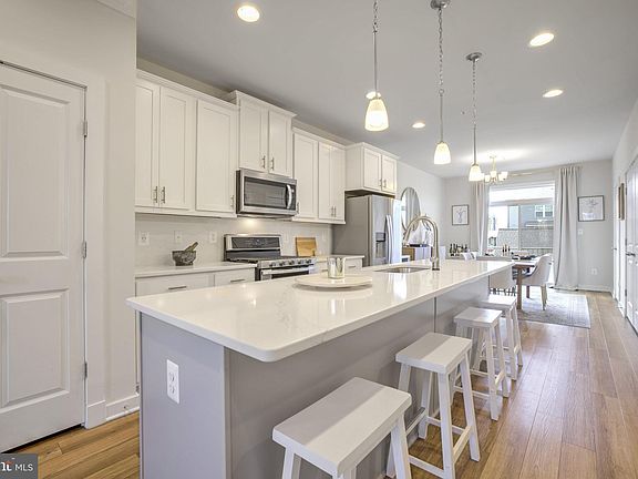 Welcome to this like-new, beautifully designed 3-bedroom, 2 full bath, and 2 half bath townhome in the highly sought-after Stone Barn Village of Villages of Urbana. With modern finishes, an open-concept layout, and luxurious upgrades throughout, this home is move-in ready and perfect for today’s lifestyle. Step inside to Luxury Vinyl Plank flooring and recessed lighting throughout. The entry-level offers a spacious rec room, ideal for a home office or additional living space. The main level boasts a bright, open floor plan—perfect for entertaining. The chef’s kitchen features a huge center island, quartz countertops, stainless steel appliances, a gas stove, touchless faucet, stylish pendant lighting, and two large pantries. The spacious dining room accommodates a large table for gatherings, and the living room is accented with crown molding. A sliding glass door provides access to a future main-level deck (ledger board already installed). Retreat to the primary suite, offering a cozy sitting nook, two large closets, and a private balcony. The luxurious en-suite bath includes a ceramic tile shower, separate soaking tub, double-vanity sink, and water closet. The second bedroom features an en-suite bath with a tub. A bedroom-level LG ThinQ washer and dryer add convenience. The fourth-level loft functions as a third bedroom, complete with a half bath and access to the rooftop deck, perfect for relaxation. Enjoy the convenience of a 1-car garage plus an additional driveway space. Located in the vibrant Villages of Urbana, this home is just a short walk to the Stone Barn Village Swim & Recreation Center, Urbana Community Park with Skate Park, multiple playgrounds, and local schools. Take advantage of extensive hiking & biking trails, other community pools, tennis courts, ballfields, and shopping in the Market District. Don’t miss the opportunity to own this stunning townhome in one of Urbana’s most desirable communities!