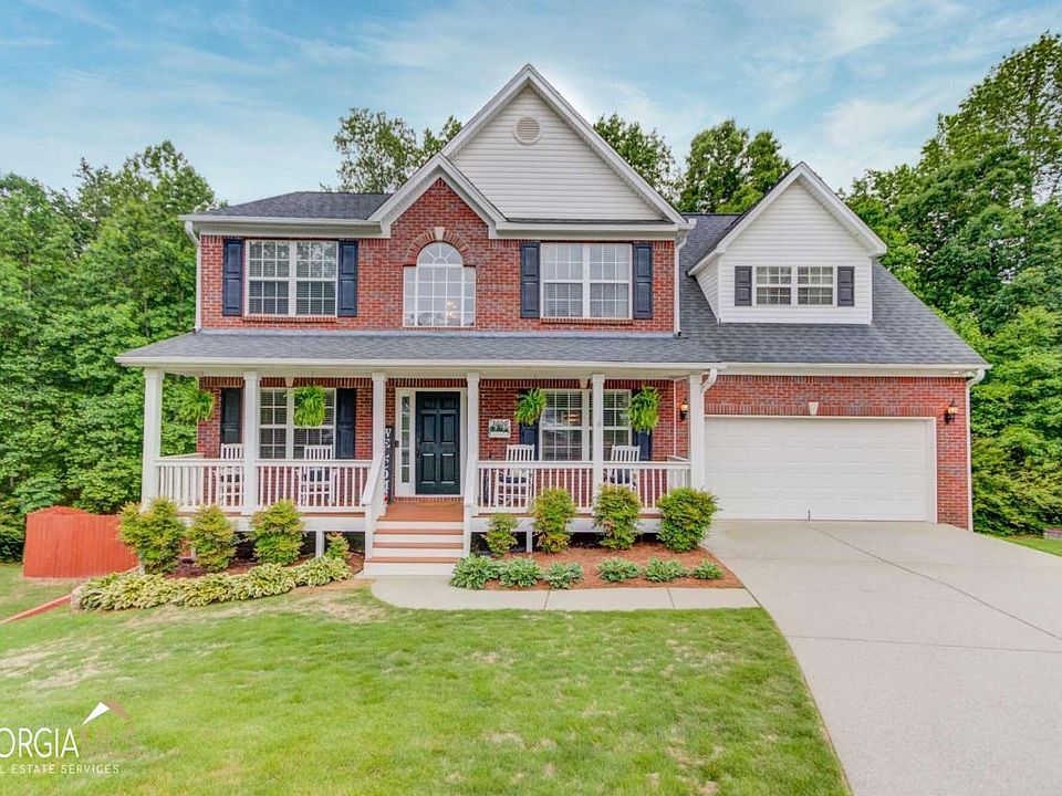 Spectacular, move-in ready house with amazing location and highly rated Seckinger school cluster! A large rocking chair front porch welcomes you and your guests and opens to an inviting 2-story foyer which features an office/living room with custom barn doors to the left and a formal dining room to the right. The large eat-in gourmet's kitchen has been thoughtfully renovated with lots of cabinets, like new stainless appliances, and counter height breakfast bar which is open to a family room with built-in bookshelves and gas logs fireplace. Additional main level features include a powder room and laundry room with lots of cabinets for storage. The upper level features and over-sized owner's retreat that has a sitting area with electric fireplace, updated private bath with huge shower/separate tub, and a mammoth walk-in closet with custom shelving and full length mirror that pulls out and has a shoe rack. The secondary bedrooms are large and there is an updated hall bathroom. The terrace level is fully finished with a craft room, billiards room, home theater, dry bar, full bath and a large amount of finished space with shelving for storage. This is a smart home and everything is wired for Alexa and CC TV throughout the interior and exterior. The rear deck overlook a private, fenced rear yard that features an outbuilding with power, a fire pit, and a running creek that borders the rear of the property. This house is absolutely stunning and a perfect place to make a home.