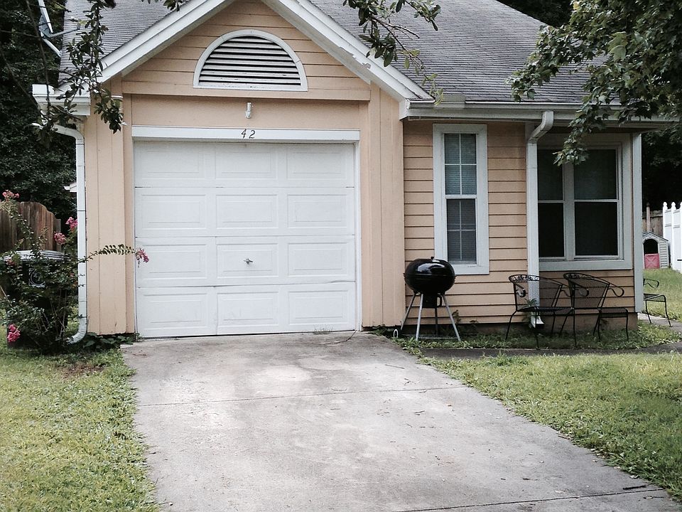 Adorable Cottage Style House Must see! 2 Bedrooms, 2 full Bathrooms. Living Room has Cathedral Ceilings, Ceiling Fan and a Fire Place. Kitchen has: Stove, Refrigerator, Dish-washer. Single Car Garage can be used as a garage or an additional room. Approximately 1000 sq ft. Electric Heat. Convenient location Off of South Holden, near the intersection of Holden and Interstate 85. Address: 3607 #42 McCuiston Rd., Greensboro NC 27407 Directions: Going South on Holden Road before the interstate make a right on McCuiston Road at the light, left into Community. Rent is $775. Deposit is also $775 and $40 application fee per adult. For more information or to set up an appointment to view the property please call Triad Property Managers at 336-365-8020. $40 application fee per adult