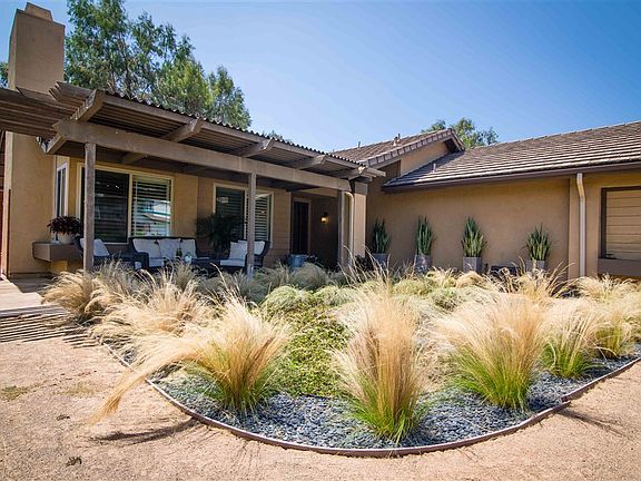 Great find in established Carlsbad neighborhood with many outstanding, hard-to-find features. This one-story, three bedroom/two bath home with 1,689 square feet has a welcoming, covered front porch and drought-resistant landscaped front yard; nice size elevated rear yard set above street level with hillside views and on-site RV parking. Inside, designer fixtures, artisan barn doors, easy-care laminate flooring and newer bathroom vanities and fixtures are all included. Plus, good schools, no HOA associati