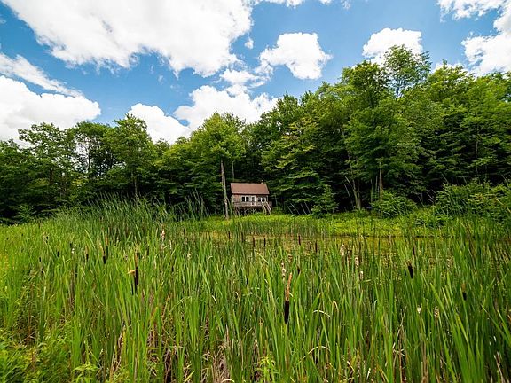25.97 acres Land with large spring fed pond (one third acre pond +/-) with private camp overlooking pristine pond. Mostly wooded, very serene. Camp has open living, kitchen space with stairway to second story sleeping loft. First floor bathroom (rustic) has a compost toilet installed. Some plumbing for water is in place but water source may have been the pond (spring fed, moving water). Oneonta schools, minutes from South Side Mall. Camp is wired for generator. (no generator on premises)
