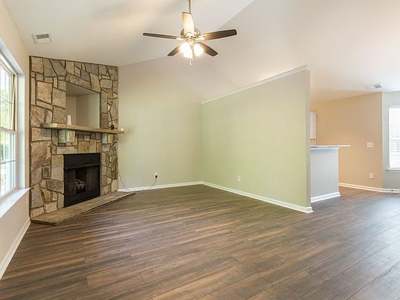 Beautifully upgraded ranch-style home with new paint, granite counters, laminate flooring, carpet, brushed nickel lighting/fans/fixtures, & SS appliances. Bright, open floor plan with LR fireplace & vaulted ceilings, ceiling fans in LR & bedrooms, & separate W/D area. Master suite with private bath, separate shower/tub, & walk-in closet. Relaxing rocking chair front porch; long gravel driveway & 1-car garage. Private, fenced back yard with 10x11 patio & large lot of almost 1 acre!