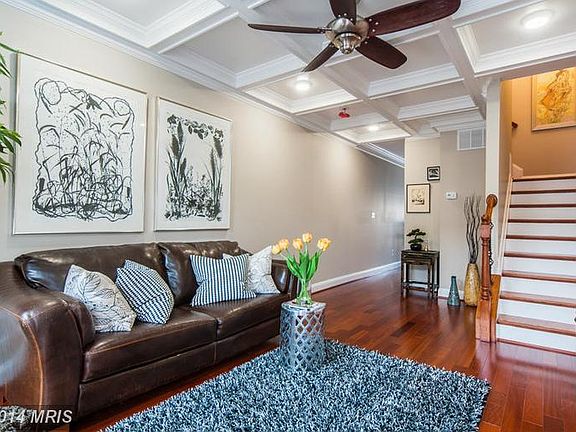BEAUTIFULLY DESIGNED ROWHOME WITH 3 FINISHED LEVELS & 2 CAR PARKING! Hw floors throughout main level, spacious LR w/ coffered ceiling, designer kitchen w/ granite counters & ss appliances, Master suite w/ barrel ceiling & marble full bath w/ multiple shower heads & body sprays, 2nd bedroom w/ hall bath, finished basement w/ family room, bedroom, full bath, & laundry, rear deck & 2 car parking pad!
