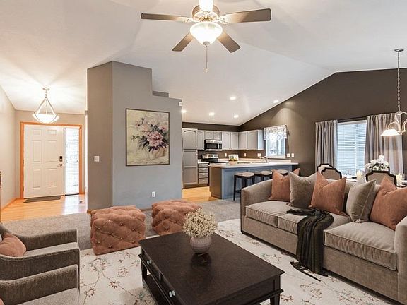 College Community schools, open floor plan ranch home. Sits on a large lot private to the rear with no neighbors. Fenced in yard. Deck with steps to the back yard and a shed. Walkout lower level. Inside has new carpet on the main floor. Newly painted kitchen open to the living and dining spaces. Good sized bedrooms. Lower level is ready to party. Massive bar open to the rec-room. Another 4th bedroom and loads of storage. Great Prairie schools home!