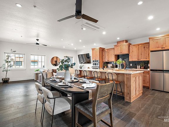 Discover the perfect blend of urban living & outdoor adventure in the heart of Treasure Valley! This stunning condominium offers direct access to the Greenbelt, allowing you to step right outside & enjoy walking, biking, or exploring the scenic beauty of the area. With kayaking, paddleboarding, & even river surfing right at your doorstep, outdoor enthusiasts will love the convenience & natural beauty this location provides. The 3-bedroom, 3.5-bath townhome features luxurious finishes, all appliances & window coverings (including blackout blinds). The open floor plan is bright & energy-efficient, with central vac plumbing for easy upkeep. Enjoy a gourmet eat-in kitchen with quartz countertops, spacious rooms, each with an en-suite bath. The primary suite includes dual closets & soaking tub. Community amenities include a clubhouse, pool, and private riverside beach, perfect for relaxing and entertaining. Live in the vibrant Waterfront District, close to downtown, parks, and local cafes, breweries & more!