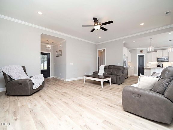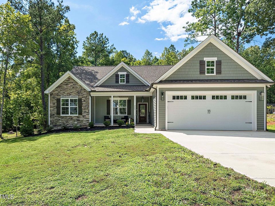 Functionality! Split Bedroom RANCH on a partially wooded .92 acre lot. The rocking chair covered front porch invites you into the open floorplan which has a spacious family room that seamlessly flows into the kitchen area. Many customized designs include luxury vinyl plank flooring throughout. Family room has a gas fireplace with logs and built in floor to ceiling bookshelf with a ceiling fan/light combo. Kitchen features granite countertops, oversized kitchen island with pendant lighting, trash drawer, pantry, stainless steel appliances that includes a gas range with center grill, tile backsplash and soft close drawers. Owner's suite with a HUGE tiled walk-in shower, double vanity, separate toilet closet and walk in closet with wood shelving. Secondary bedroom has a walk-in closet and secondary bath features vanity with double sinks. Spacious laundry room with a bench seat drop zone, laundry sink and pull-down attic area. Private screened porch and a concrete grilling patio overlooks flat backyard. A must see!