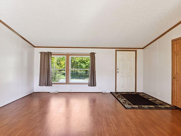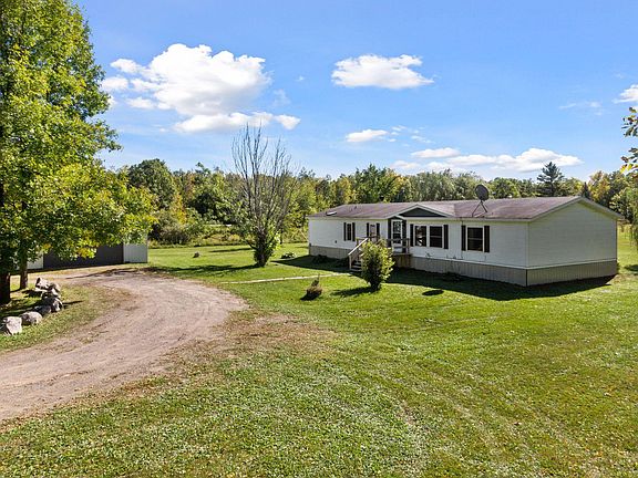 The one-level home is nestled on a sprawling piece of land spanning a little over 14 acres. As you step inside, the heart of the home reveals itself with a well-appointed kitchen boasting a center island, providing ample space for culinary adventures and casual gatherings. The adjacent eat-in dining area, adorned with natural light streaming through a sliding glass door, offers a picturesque view of the backyard. Beyond the kitchen lies a cozy living room, complete with a charming fireplace that beckons relaxation and warmth on chilly evenings. The open layout and thoughtful design of this home seamlessly blend indoor and outdoor living, making it an idyllic retreat for those seeking a tranquil and inviting space.