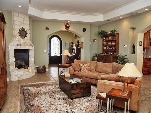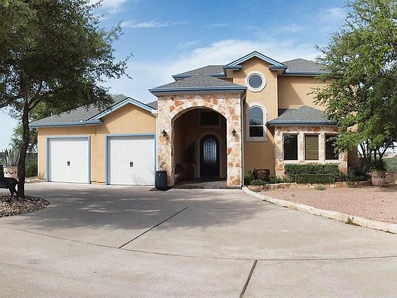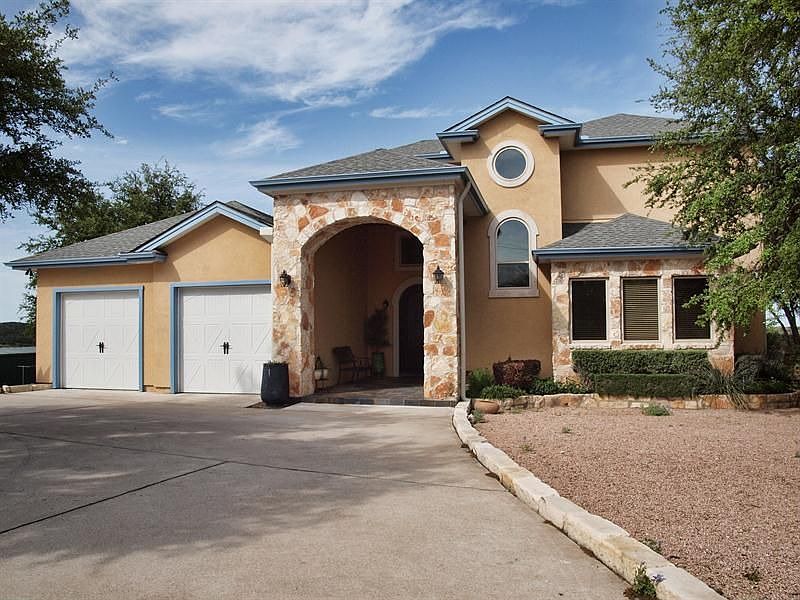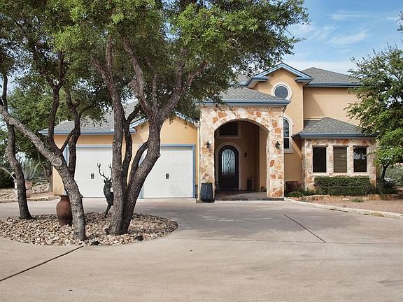 Panoramic view estate in gated subdivision on 3.8 acres w/ breathtaking hill country & lake views! Features are: exec office w/built-in desk, bookshelves, & closet. Master bath w/double vanity, jetted tub, separate walk-in shower, & huge walk-in closet. Very energy efficient home w/ low utilities, wine cellar, butlers pantry, Sub-Zero fridge in utility room, media room, Large 2 bay class A RV garage, gazebo, outdoor kitchen, hot tub & rock waterfall pool! 3rd full bath could be added upstairs-ask agent!