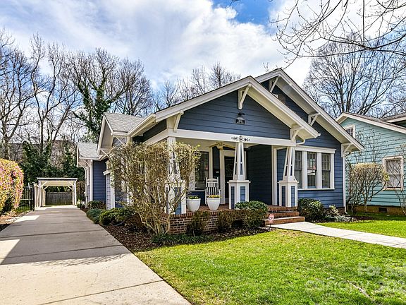 A can't-miss opportunity in a hard-to-beat location! This charming, well maintained bungalow was built in 1940 in Elizabeth before being moved to NoDa in 2009. Now, steps away from one of Charlotte's most vibrant neighborhoods, 36th Street light rail station, and soon-to-open major grocery store, this delightful home with charming curb appeal flows from a welcoming front porch into a living room that's perfect for hosting, complete with cozy fireplace. The home's beautiful hardwood floors flow through french doors into the dining room and a kitchen that looks out onto a spacious fenced-in backyard, featuring custom pergola, screened in porch, deck, adorable shed and matching carport. Abundant storage plus convenience with a large laundry room with sink and walk in pantry area. Three bedrooms align the right side of the home, along with a hallway bath with tile and tub and a jack-and-jill with standup shower. Charm, convenience, and your new home await!