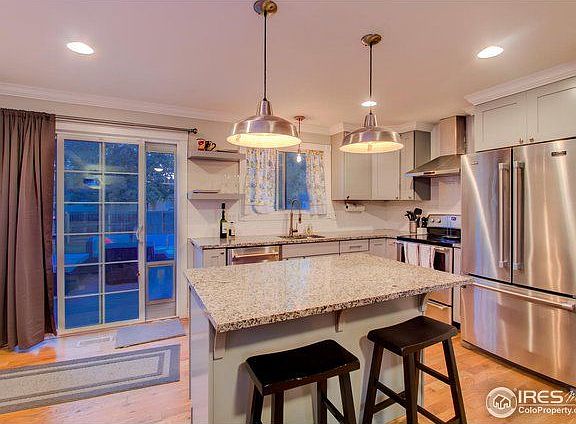 3 garage spaces: 1 attached+2 car detached! Gorgeous REMODEL in ideal SE Fort Collins. EVERYTHING has been redone: Entire Kitchen, both full bathrooms, all lighting, roof, windows, garage door, patio! 2 garages for plenty of storage or a shop. No HOA! Large master with walk-in closet. Open floor-plan living room leads to eat-in kitchen w/island, granite counters, soft close cabinets, full pantry. Wood burning brick fireplace in family room. Finished basement with bedroom and full laundry