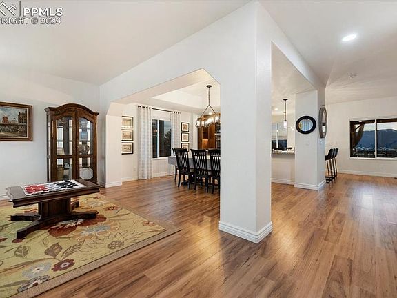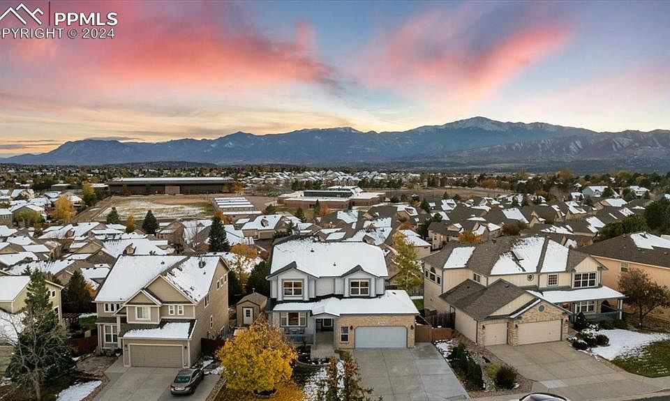 Discover timeless elegance and modern comforts in Charleston Place. A remarkable two-story home with 6 bedrooms and 3.5 bathrooms. The main level is adorned with newer wood laminate floors, blending durability with sleek aesthetics. The centerpiece of this home is an exquisite, updated gourmet kitchen—a chef’s dream with expansive granite countertops, stainless steel appliances to include double oven, refrigerator, dishwasher, two microwaves for added convenience. Thoughtfully designed cabinetry with pull-out shelves maximizes storage while adding a touch of designer style. Perfectly positioned, the kitchen and family room enjoy south-facing windows, showcasing spectacular views of the Pikes Peak Range and filling the space with warm natural light. A cozy gas fireplace in the family room completes this inviting space, ideal for both relaxation and gatherings. Upstairs, you'll find four generously sized bedrooms, including a luxurious primary suite that serves as a private retreat. Unwind in the spacious five-piece bathroom featuring elegant tile, a walk-in shower, a deep soaking tub, and an expansive walk-in closet. The upper-level laundry room adds a touch of convenience to your daily routine. The finished, walk-out basement offers versatility with two additional large bedrooms and a second laundry area in the utility room, providing added convenience for guests or extended family. Step outside to a true outdoor sanctuary—a covered deck with durable Trex decking and sleek metal railings that seamlessly blend style with functionality. Enjoy evenings in the newer jacuzzi, surrounded by calming mountain views. Every corner of this home reflects meticulous attention to detail, seamlessly combining luxury and functionality to create an exceptional living experience. Don’t miss your chance to call this Charleston Place gem your own!