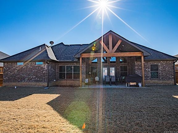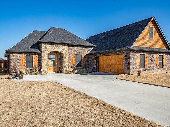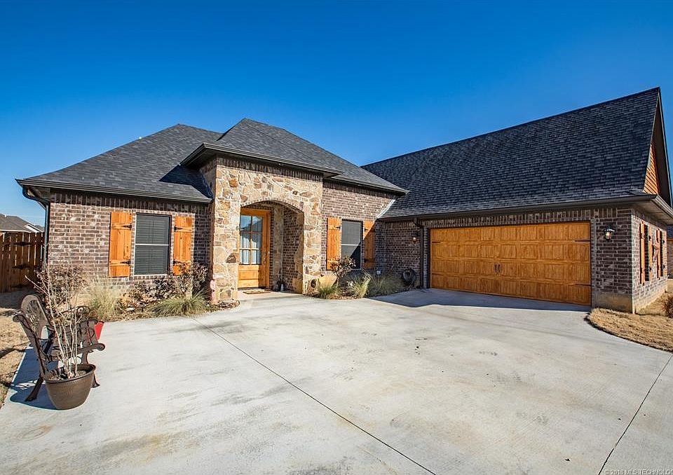 ALL THE SPACE YOU NEED, ALL THE FEATURES YOU WANT. 4/3/2 home with stone, brick, cedar featuring large picturesque windows, vaulted ceiling, wooden beams, granite, home office, molding, fireplace & more! Outdoor patio with cedar sunburst and fenced yard.
