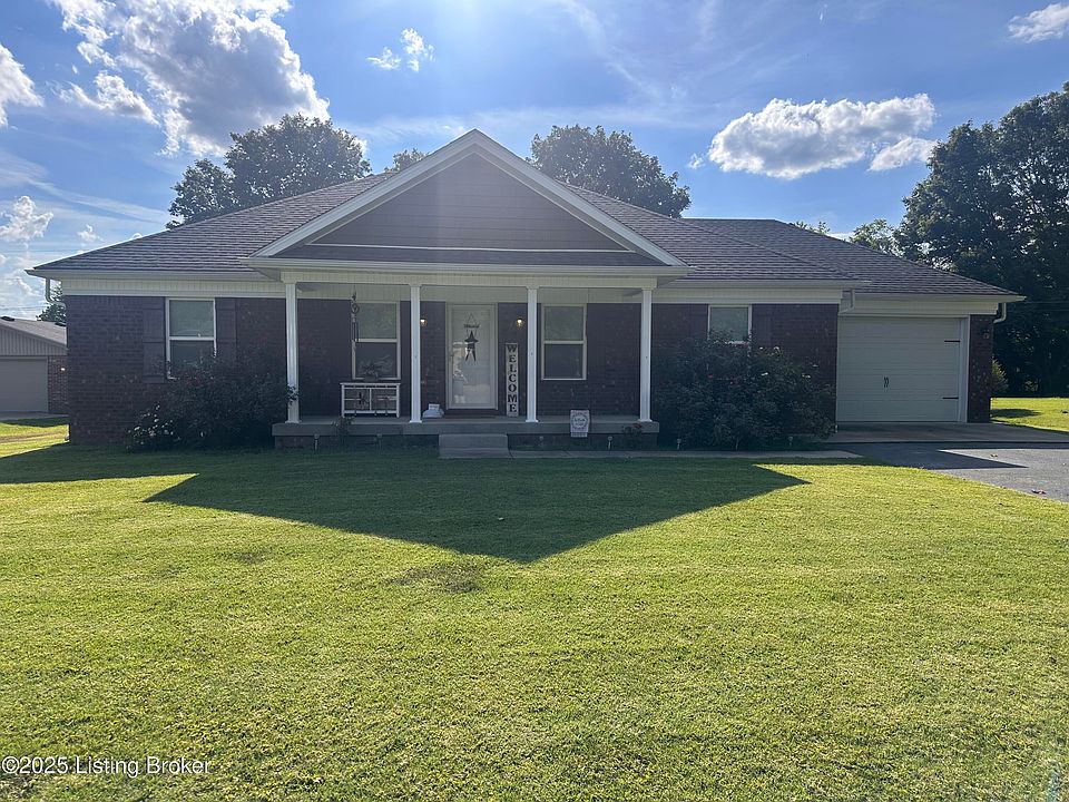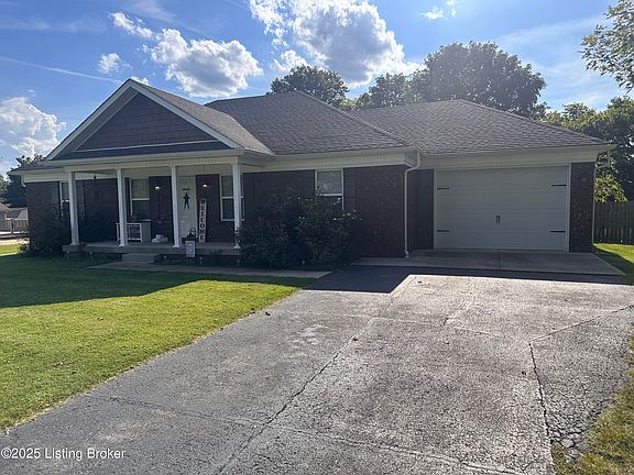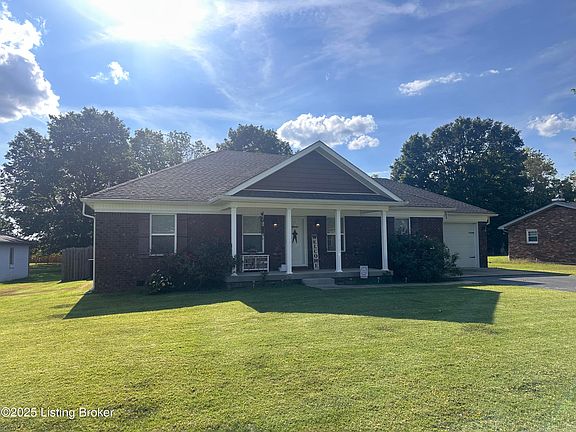 Welcome to this beautifully maintained ranch home built in 2019 on a spacious half-acre lot in Bardstown's Royal Acres subdivision. Featuring 3 bedrooms and 2 full baths across 2,056 square feet, this residence blends an open concept living with warm, inviting spaces. The large living area flows seamlessly into an updated kitchen with plenty of room, a bright dining area, and an expansive, newly finished sunroom. Flooded with natural light and overlooking the tranquil backyard, the sunroom is perfect for relaxation. The convenience of a one car garage, and outbuilding complete this beautiful home. Its move-in-ready condition, contemporary updates, and thoughtful layout make it ideal for families or downsizers seeking quality and ease.