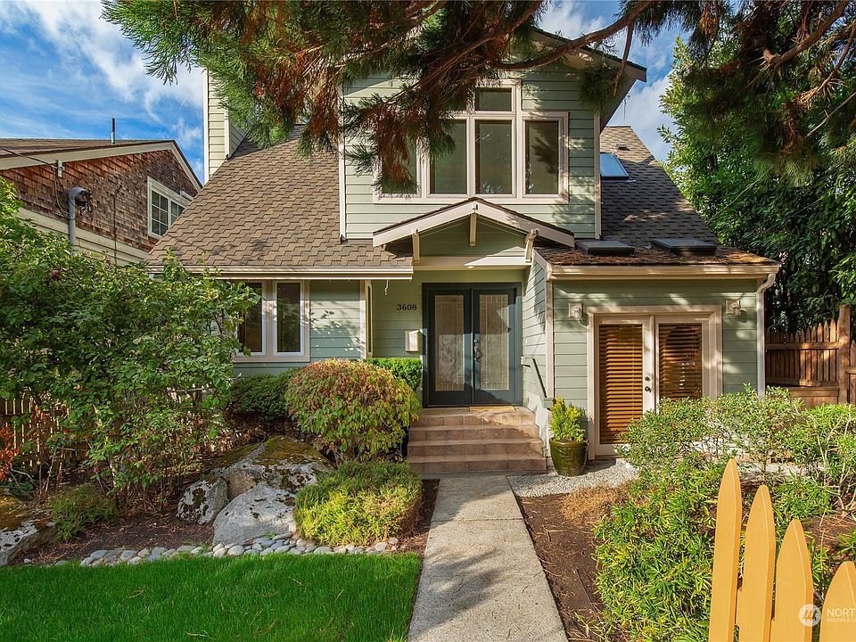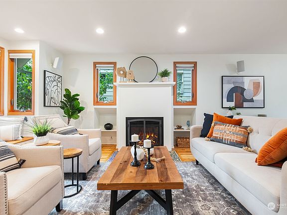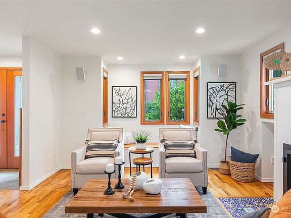 Denny Blaine Bliss: A peaceful and private sanctuary; all spaces above grade with verdant outlooks to mature landscaping. From off-street parking, meander through low-maintenance gardens; past an enchanting waterfall & pond. Inside, hardwood floors connect open living / dining rooms with period details, a stylish fireplace & smart built-ins; great for entertaining. Notice the quality; wood windows & beautiful French doors to a tranquil deck; living flows indoors & out. The kitchen is great for conversation; plenty of room for both helpers and storytellers. Upstairs find 3 large bedrooms + family room/den/office; south-facing light and screens to separate the space. A/C. Restaurants & shops in Madrona & Madison Park. Your city close at hand.