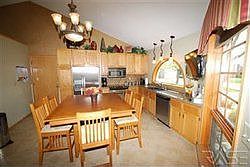 Fabulous ranch walk out home in Raven Oaks. Covered front entry will welcome your guests. Bright and inviting kitchen with circle top window gleaming counter tops, impressive glass back splash and travertine tiled floor. Soaring vaulted ceilings in living room with large picture window and door out to the oversized deck. 3 bedrooms on main floor. Master bedroom w/walk in closet and private bath. Lower level family room has impressive brick fireplace and built-in, walks out to back yard and room