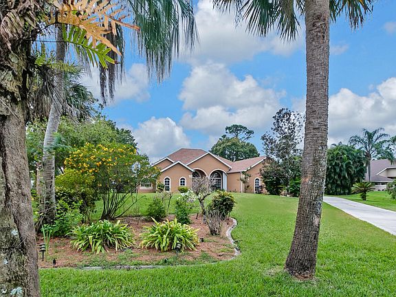 Welcome to your very own paradise in W.Melbourne. This spacious house is on a sprawling .61 ACRES in a private CUL DE SAC. POOL & SPA HAS A WATER VIEW of pond. It is located in the prestigious Carriage Gate subdivision. The beautifully designed house has a split bedroom floor plan. OVER SIZED 3 CAR GARAGE & sweeping driveway. It has a formal living and dining room areas with elegant cathedral ceiling. Patio has an outdoor kitchen .Front and back porches are tiled. Backyard has FRUIT bearing trees (8 mangoes,2 avocado,etc). Roof was replaced in 2015.Newer pool equipment. The family room has skylights for natural lighting. ACCORDION HURRICANE SHUTTERS. New Exterior paint.3 BEDROOMS + FLEX ROOM (built in desk/shelves can be removed&closet doors installed) = 4 ROOMS AND 3 FULL BATHROOMS.